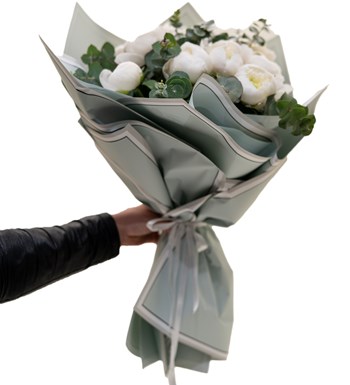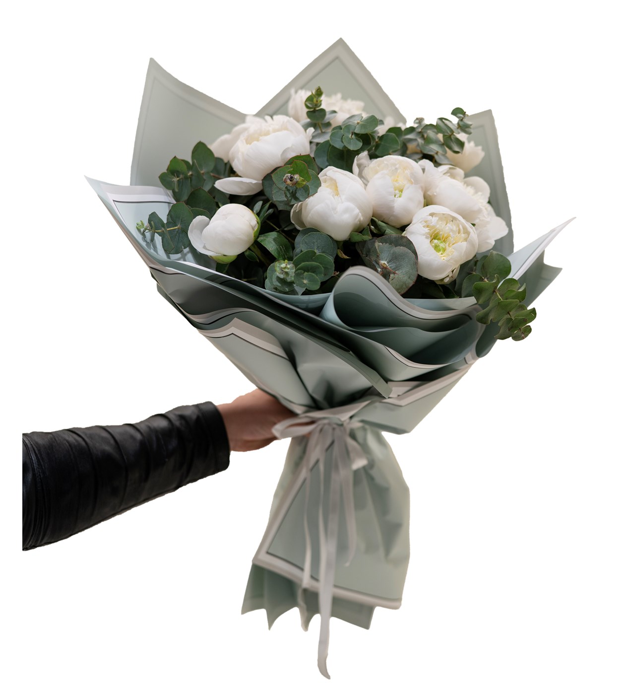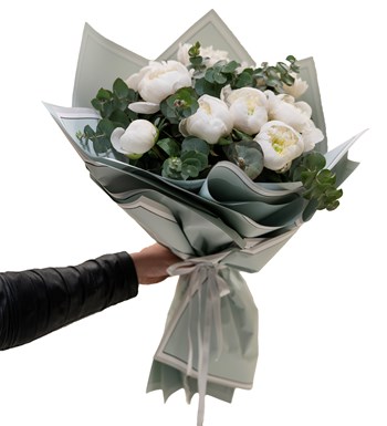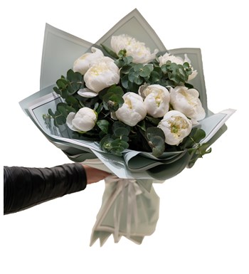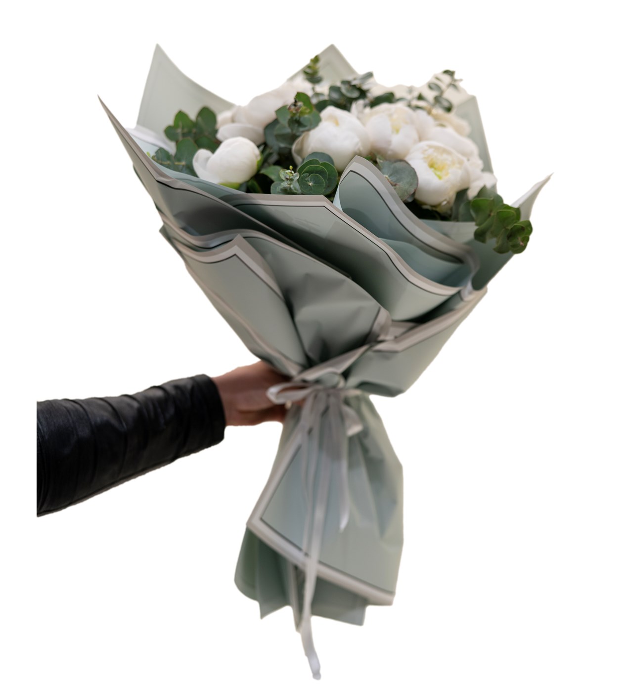Tasarımda 11 adet ithal beyaz şakayık buket şeklinde paketlenmiştir. Boyutu:60 cm'dir