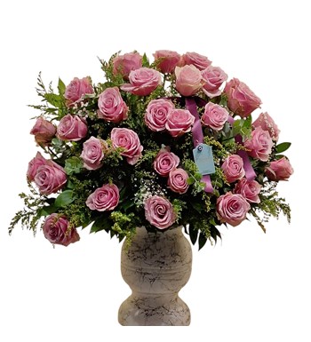 Tasarımda 51 adet ithal pembe gül ile hazırlanmıştır. Boyutu:70 cm'dir