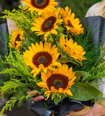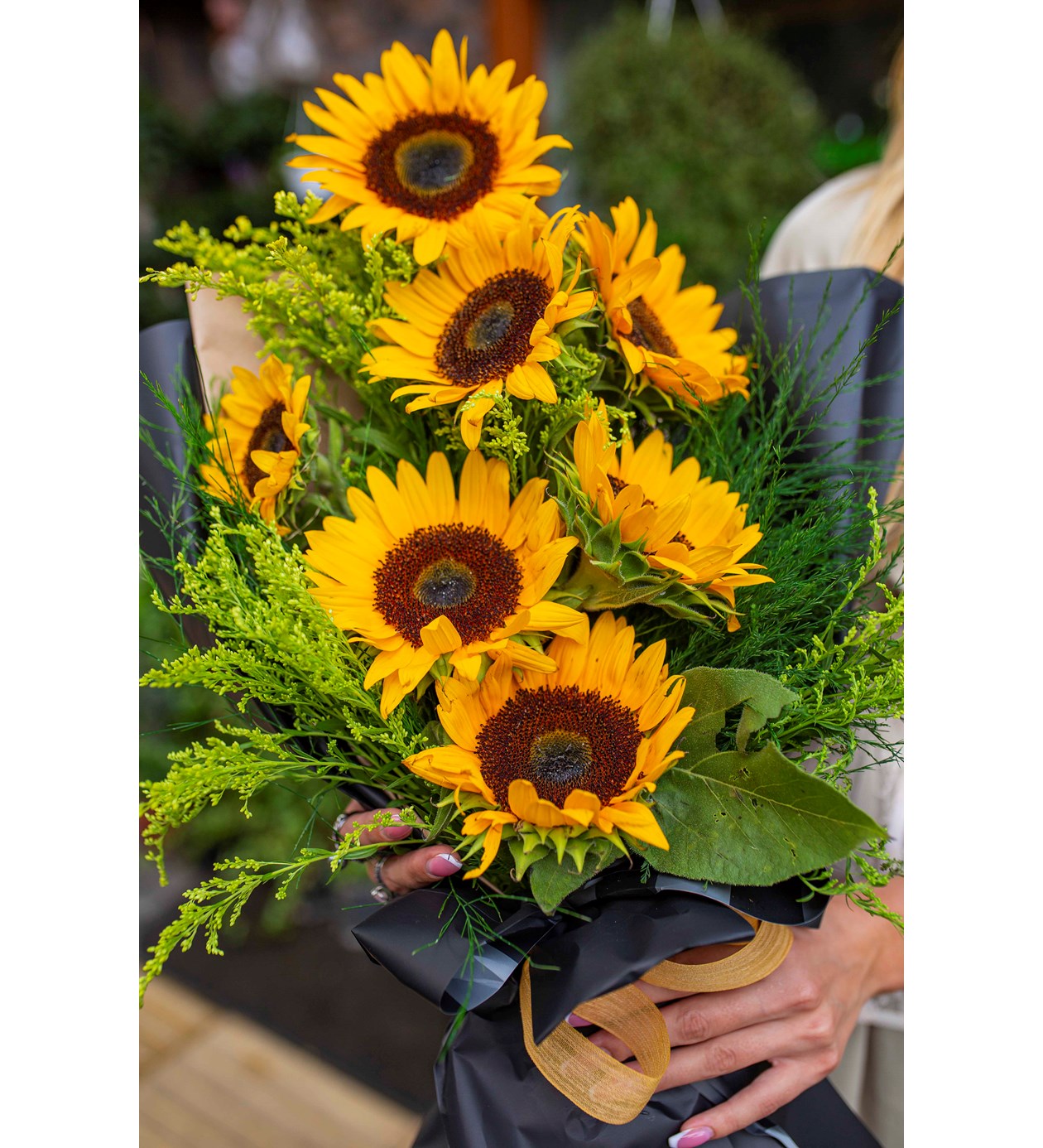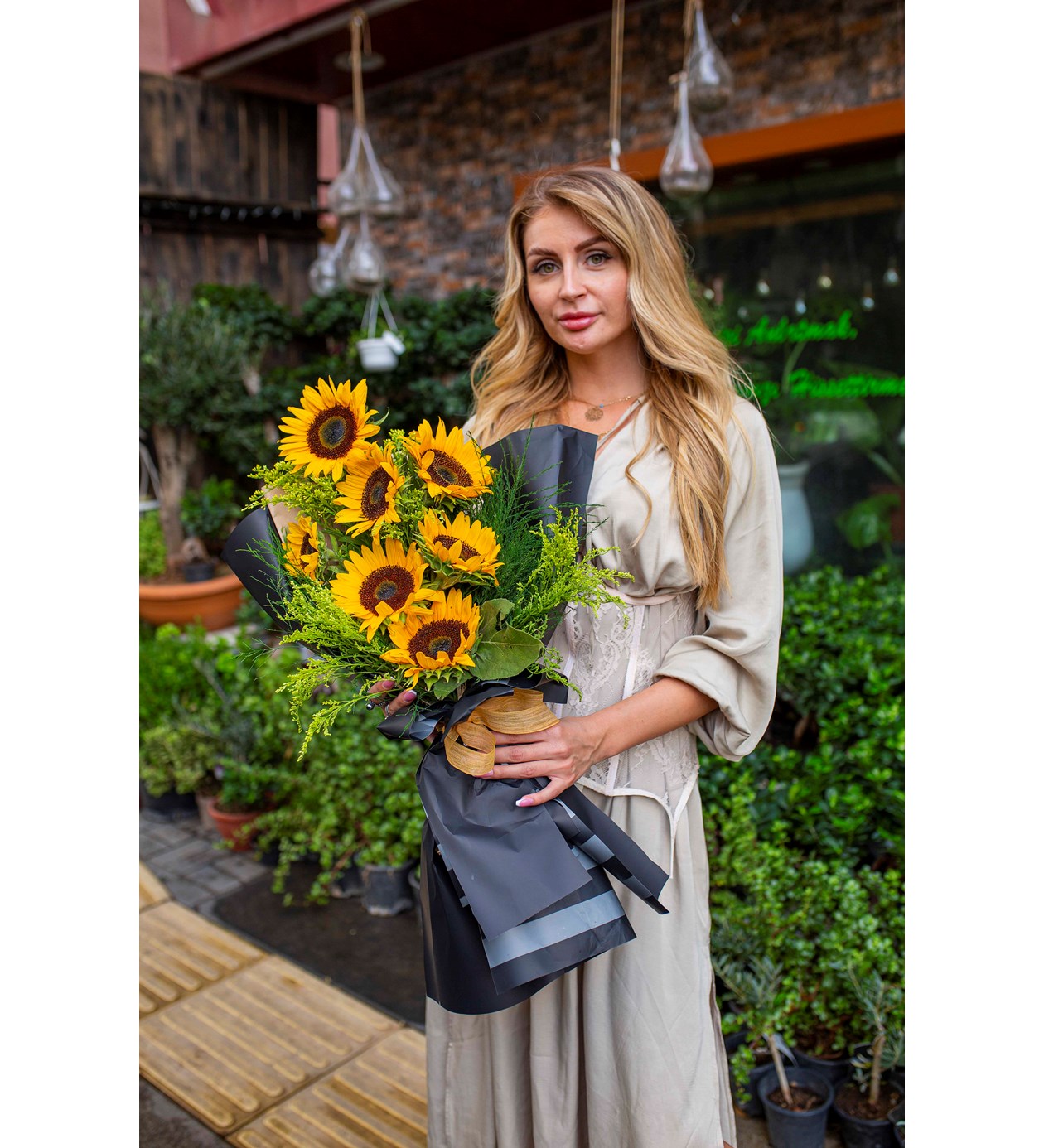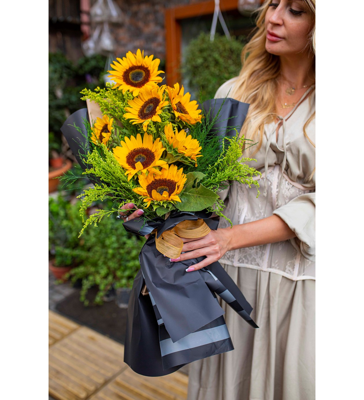 Tasarımda 7 adet ay çiçeği çiçek kağıdına sarılarak hazırlanmıştır.