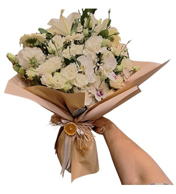 Tasarımda beyaz mevsim çiçeklerinden oluşmaktadır Boyutu:60 cm'dir