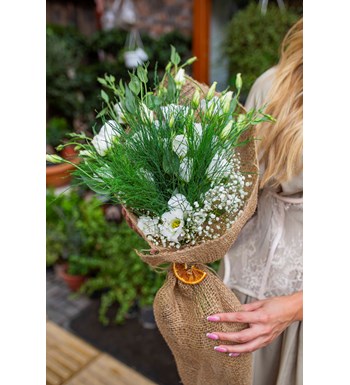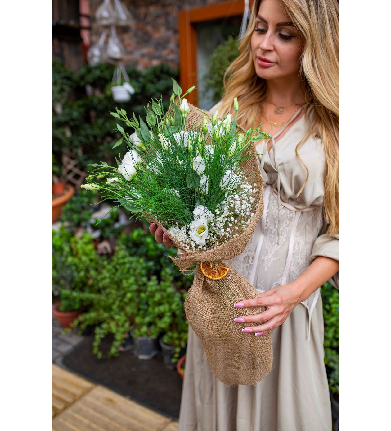 Tasarımda 9 dal listanbut çiçek kağıdına sarılarak hazırlanmıştır.