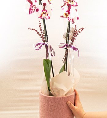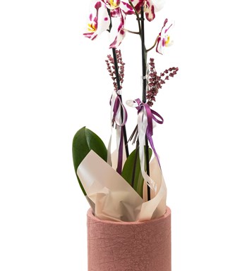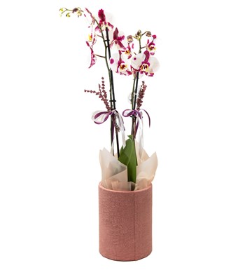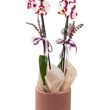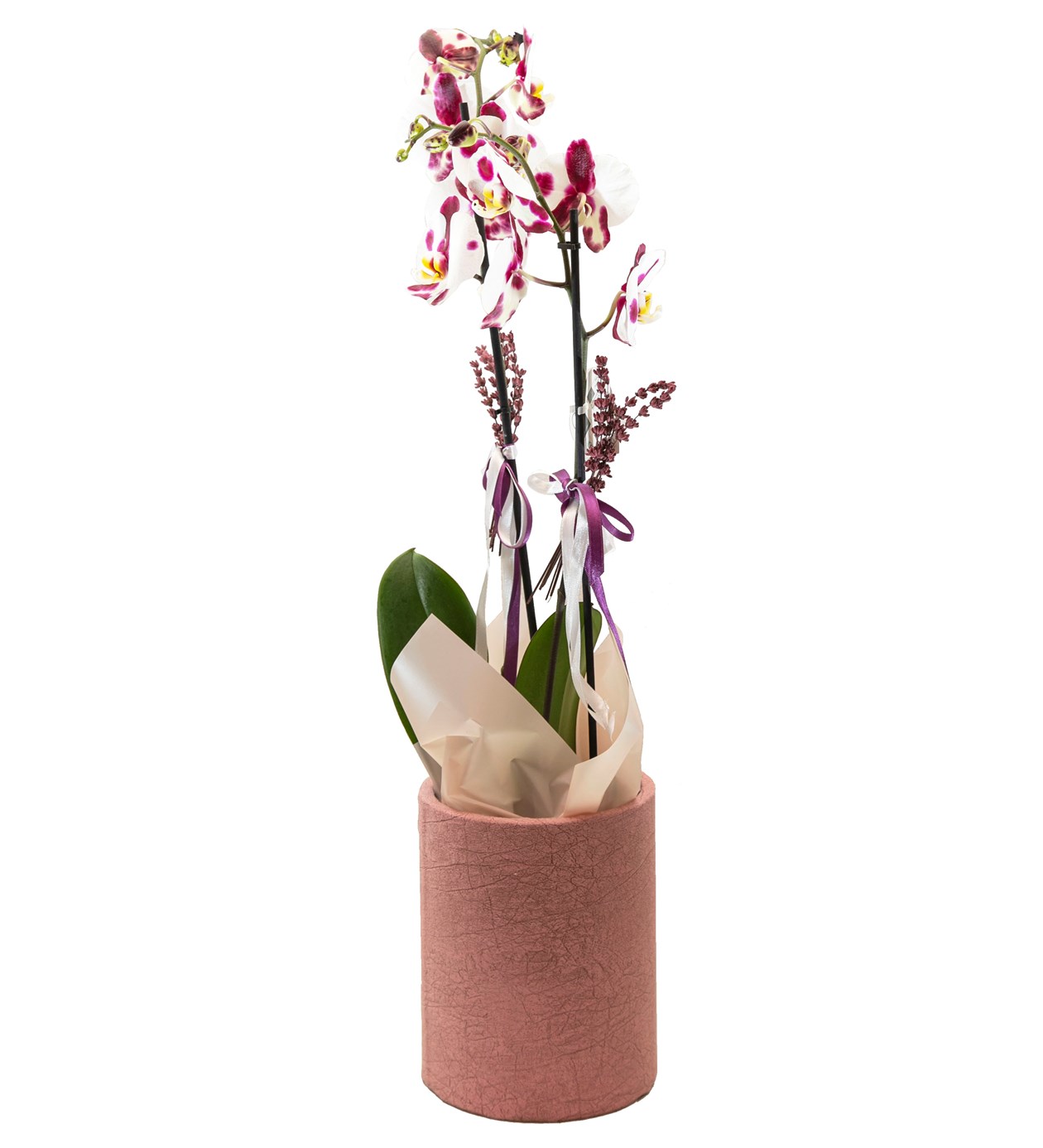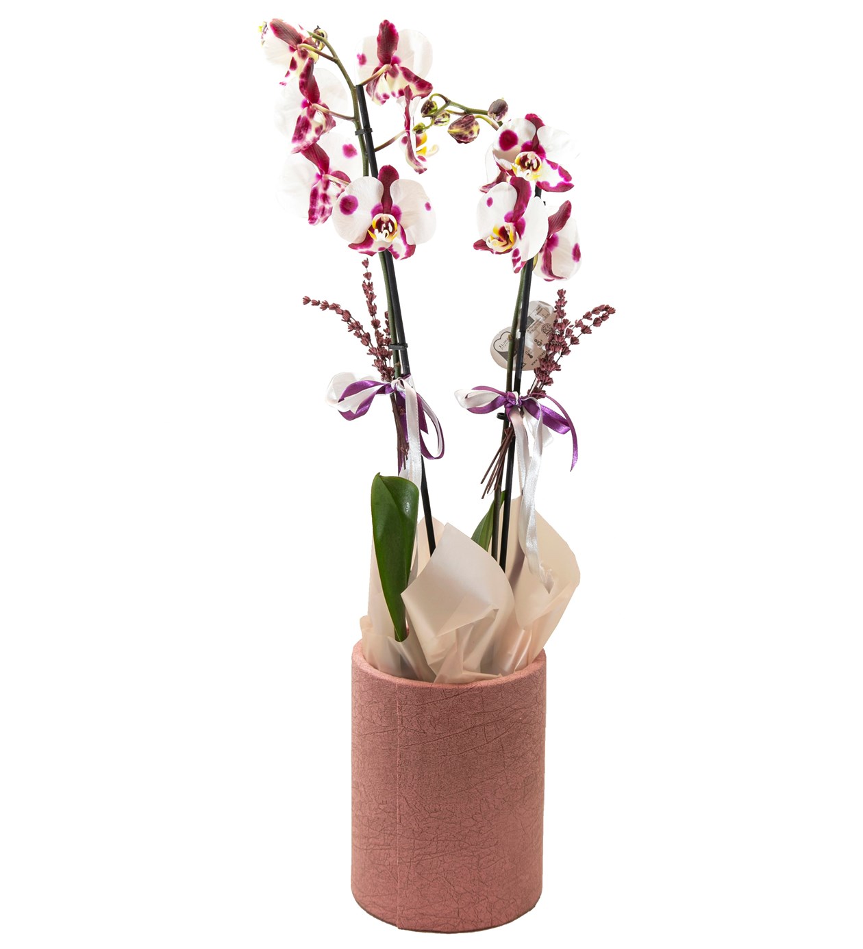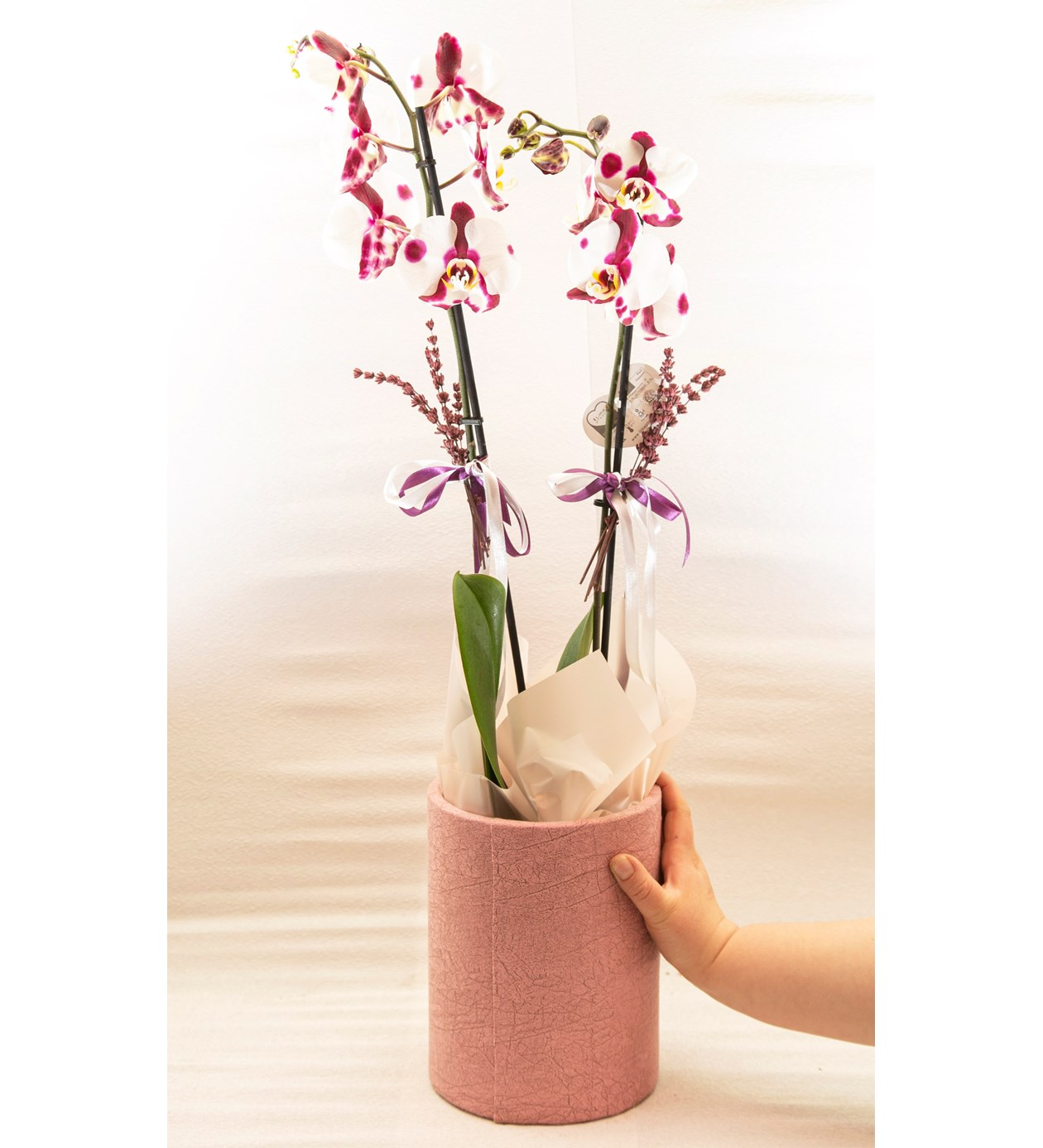 Tasarımda kadife kutu içerisinde benekli çift dal orkide eklenerek hazırlanmıştır. Boyutu. 75 cm'dir