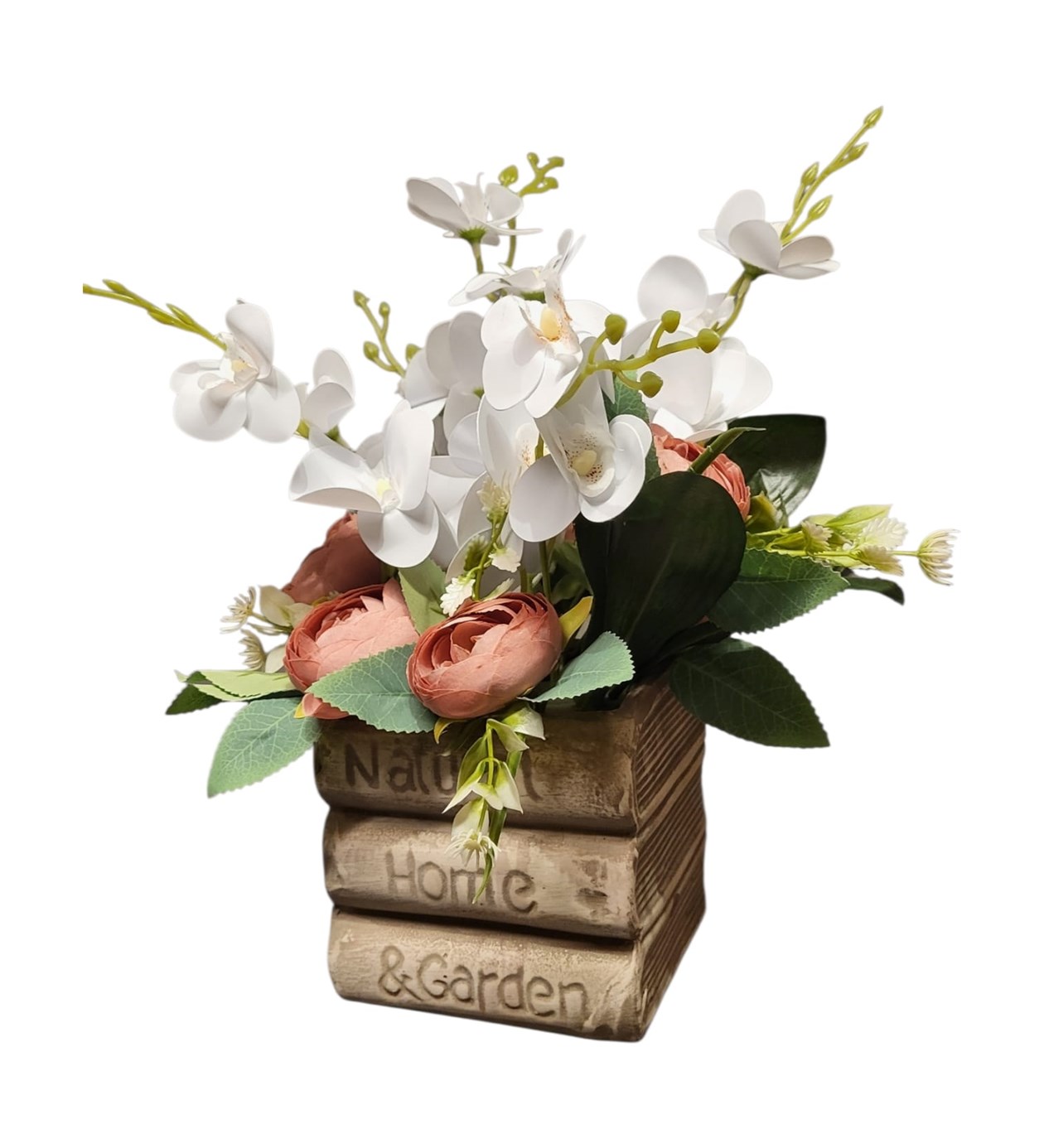 Tasarımda kitap vazo içerisindeyapay çiçekler eklenerek hazırlanmıştır