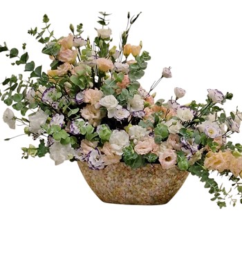 Tasarımda mevsim çiçekleri ile hazırlanmış buket bulunmaktadır. Boyutu: 60 cm'dir