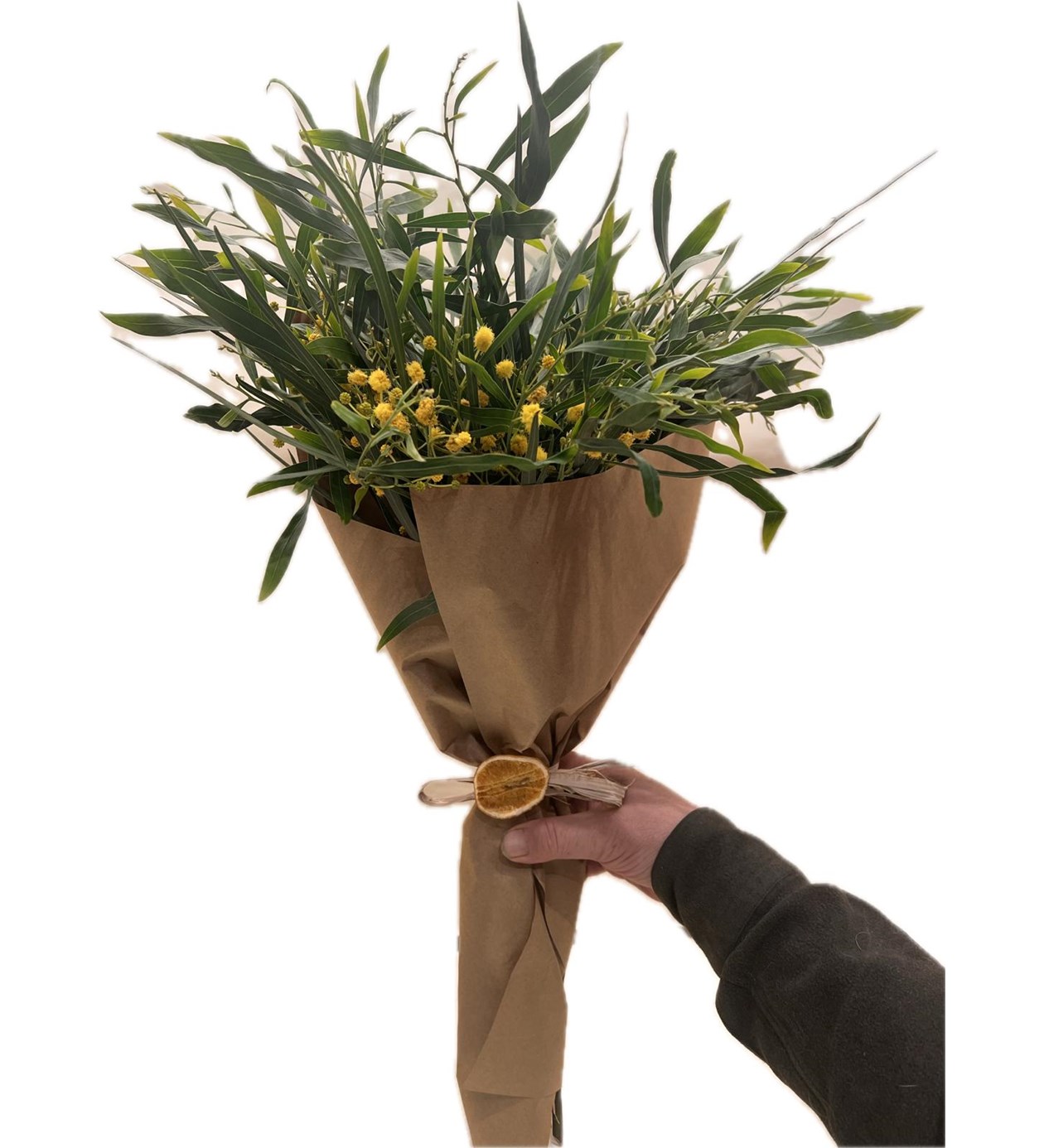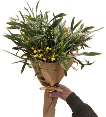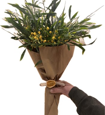 Mimoza çiçeği buket şeklinde hazırlanmıştır