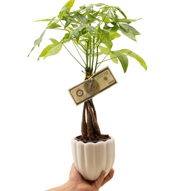 Tasarımda dekor vazo içerisinde pachira para bitkisi eklenerek hazırlanmıştır.